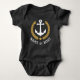 Ein eigens entworfener nautischer Bootsanker, goldene Lorbeerfische und ein goldener Stern mit Ihrem personalisierten Namen oder Bootsnamen auf einem einteiligen Baby-Bodysuit. Mehrere Farben zur Auswahl. Macht ein großartiges Geschenk.