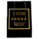 Ein grafisches Bild von fünf goldenen Sternen mit dem Text 5 Sterne Boss von Künstler/Designer Charmaine Paulson auf einer Geschenktasche.