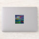 Dieser Aufkleber hat eine Bootsszene darauf.