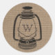 Ein Aufkleber mit einer schwarzen Abbildung einer Öllampe im Camping-Stil auf einem inspirierten Hintergrund. Personalisieren Sie Ihre Monografie.