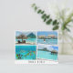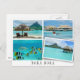 Postcard with a leihe of four landscapes on Bora Bora with lot of water of the great turquoise lagoon with sharks and overwater resorts with fotos with a white edge and one twisted like it is loose and with the text: 'Bora Bora' It is hat Great Vacation Souvenir.