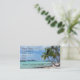 Palmelinie Strand am Bora Bora Perlen-Strandurlaubsort. Rückseite hat Foto der Wellen, die auf dem weißen Sand brechen. Fertigen Sie mit Ihrem Info auf Front und Rückseite besonders an!
