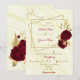 elegante Bordeaux-Blume mit goldenen Blätter auf zwei goldenen Rechtecken Hochzeitseinladung Die Glitzer-Details werden simuliert