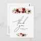 Eine schöne Postkarte, um Ihnen Danksagungen an Ihre Hochzeitsgäste zu schicken. Die Blume sind bordeauxrot und rot. Sie können Text und Farben bearbeiten.