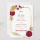 bordeauxrot & goldfarbene Blume mit goldenem geometrischem Rahmen Save the Date Einladung. Die Einzelheiten des Glitzer werden simuliert