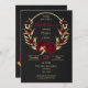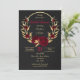 Romantische bordeauxfarbene Blume und vergoldete Blätter botanischer Kranz Luxus schwarze Braudusche Einladung Die Glitzer Details werden simuliert