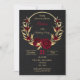Romantische bordeauxfarbene Blume und goldene Blätter botanischer Kranz Luxus Black Geburtstagsfeier Einladung The Glitzer Details werden simuliert