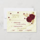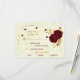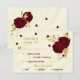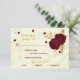 Schöne, individuell anpassbare botanische Rsvp-Karte mit Speisekarte schöne dunkelrote Blume mit goldenen Blätter vor elegantem Marmorhintergrund