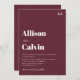 moderne burgundy Hochzeit einladen Vorlage, fügen Sie Ihre eigenen Details und QR-Code.