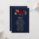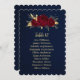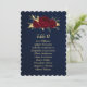 Romantische bordeauxrote Blume und goldblaue Blätter mit Sitzkarte. Die Einzelheiten des Glitzer werden simuliert