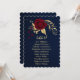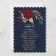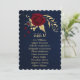 Romantische bordeauxrote Blume und goldblaue Blätter mit Sitzkarte. Die Einzelheiten des Glitzer werden simuliert