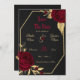 Romantische bordeauxfarbene Blume und goldene Blätter auf geometrisch schwarz Save the Date