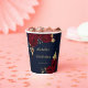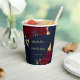 bordeauxfarbene Blume goldene Blätter marineblau Pappbecher