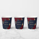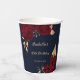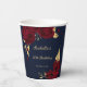 Schöne bordeauxfarbene Blume & goldene Blätter, blaue Party-Papiertasse