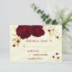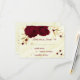 Schöne, individuell anpassbare botanische Rsvp-Karte schöne dunkelrote Blume mit vergoldeten Blätter vor elegantem Marmorhintergrund