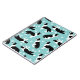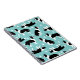 Niedliche Schwarz-Weiß-Colliese sitzen, bleibe und rollen auf blauem Hintergrund mit Pfosten, einem lustigen Hundeschema.