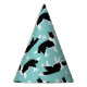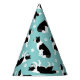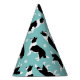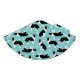 Niedliche Schwarz-Weiß-Colliese sitzen, bleibe und rollen auf blauem Hintergrund mit Pfosten, einem lustigen Hundeschema.
