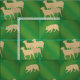 Dieses Herdendesign verwendet die Schatten-Silhouetten eines Border Collie Herding Sheep. Die Silhouetten von Hund und Schafen März über eine Vielzahl von Grüntönen.