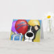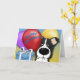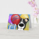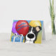 Adorable Big Nose Border Collie mit einem Geburtstagsgeschenk und halten Ballons in seinem Mund. Balloon liest Rappy Rirthday!
