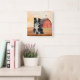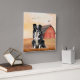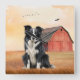 Border Collie Dog and Red Barn Ranch Quadratische Wanduhr