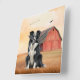 It's a lovely western cowboy art for working dog lovers and you can choose round or square clocks to suit any office, dorm room or western decor. A Border Collie dog sits in a field at the ranch with a red barn and birds in flight in the background for a great country western cowboy theme.