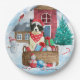 Border Collie Dog im Schnee Weihnachtshundehaus Pappteller