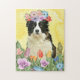 Border Collie Dog mit Blume Spring Puzzle