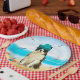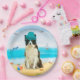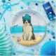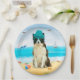 Der schwarze deutsche Schäferhund, der am Strand sitzt, ist eine Geschenkidee für jemanden, der diese Hundezüchtung Liebe hat.