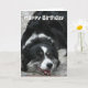 Eine Hundeschlittenkarte mit einem glücklichen jungen Border Collie Schafhund. Der Hund ist eine schwarz-weiße Grenzkollie.