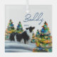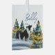Border Collie im Winter Snow Forest Weihnachtsbaumen Glass Ornament. Ruhige Winterschneelandschaft mit einer schönen schwarz-weißen Grenzkolonie und farbenfrohen Weihnachtsbäumen. Der Name des Hundes ist in einem trendigen Skript enthalten. Schöne Feriendekoration für die Besitzer von Grenzkolben, Hundefreunde und Tierfreunde. Personalisieren Sie Name und Jahr.