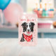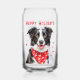 Border Collie mit Red Heart Bandana Weihnachtsfeiertag kann Glas. Niedliche und fröhliche schwarz-weiße Border-Collie mit einer roten Bandana um den Hals mit Herzen.