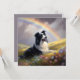 Eine personalisierte Border Collie Gedenkkarte mit einem wunderschönen Bild einer Border Collie auf einem himmlischen Hügel mit einem schönen Regenbogen-Overhead. Die Symbolisierung des Border Collie Hundes hat die Regenbogenbrücke an den Hundehimmel übergeben. Sie können ihn mit dem Namen Ihres eigenen Border Collie Hundes oder mit jedem anderen Text auf der Rückseite der Karte personalisieren. Schenkt jedem Border Collie Hundefreund ein besonderes Beileid oder Gedenkgeschenk, wenn sein Liebling vorbei ist.