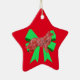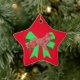 Border Collie Red Dog & Green Bow Weihnachten Keramik Ornament