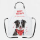 Border Collie Red Heart Bandana Weihnachtsfeier Schürze. Niedliche und fröhliche schwarz-weiße Border-Collie mit einer roten Bandana um den Hals mit Herzen. Fügen Sie Ihren Familiennamen hinzu.