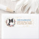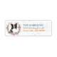 Die links Seite dieser Rücksendeadressen-Aufkleber zeigt einen Blume-Kranz in den Farben Weich Rosa, Blau, Gold, Grün und Creme. In der Mitte befindet sich ein schönes Aquarellbild eines Border Collie Hundes. Die winzigen goldenen Konfetti geben dem Hintergrund ein subtiles Funkeln. Ihr eigener Text ist rechts in blau und braun Gold.