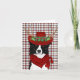Ein niedlicher Border Collie Hund auf einem Western, kariert in Grün und Rot in einem unterhaltsamen und veralteten Gruß.