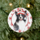 An der Vorderseite dieses Holiday-Ornaments befindet sich ein wunderschönes Aquarellbild einer Randfarbe mit einer rot-weiß gestreiften Weihnachtsmannmütze. Das Bild wird auf einem weißen ovalen gerahmt durch ein Retro-rotes Schneeflockenmuster platziert. Die Rückseite des Ornaments hat den gleichen Hintergrund und oval mit Ihrem benutzerdefinierten Text in Weiß auf einem passenden roten Hintergrund. Niedlich, besonders für jemanden, der eine Grenzkollie Liebe.