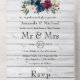 Hochzeitseinladung mit marineblauen, weißen und maronroten Pfannkuchen und Rose mit tränenweitem uAwg.