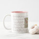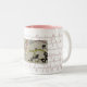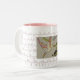 Unterschriftenvögel und -wörter, kombiniert auf einer klassischen zwei-getonten Tasse