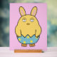 Ein Chubby, ein unbeeindruckter Küken, der wie ein Hase gekleidet ist, die Hälfte in einem dekorierten Ei - die Osterzeit hat noch nie so langweilig ausgesehen!