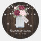 Borgundy Blush Rustic Wood Monogram Floral Wedding Runder Aufkleber