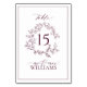 Borgundy Leafy Wappen Monogram Floral Wedding Tischnummer