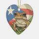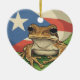 Celebrate your heritage year after year with this beautiful Boricua Ceramic Ornament. It features the charming, retro-style illustration of the iconic Coqui frog perched on a tropical leaf, set against the vibrant Puerto Rican flag. Perfect as a treasured keepsake, a meaningful Christmas ornament, or a special gift for any Boricua, this decoration is a lovely way to hang a piece of the island's pride on your tree or wall, or display it year-round.