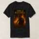 This shirt depicts a warrior in Spartan style armor making his way through a field of wheat towards a burning fire. This is accompanied by the words "Born to Raze Hell".