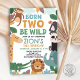 Little Boy Born Two Be Wild 2nd Birthday Invitation. This cute and whimsical boys safari or wild themed second birthday invitation features jungle and safari animals in a bohemian style. Coordinating invitations, signs, and party decorations available.