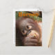 Die Wildlife Postcard zeigt einen süßen Orang-Utan auf der Insel Borneo. Die Gewinne der Künstlerin aus dem Verkauf dieser Postkarte für wild lebende Tiere werden verwendet, um Nahrungsmittel und Vorräte für hunderte gerettete Orang-Utans zu kaufen, die in dieses Betreuungszentrum gebracht werden, wo sie seit vielen Jahren Freiwillige ist. Dieser sanfte Menschenaffe ist eine gefährdete Art, und in freier Wildbahn bleibe ein Orang-Utan 7 bis 8 Jahre (oder länger) mit seiner Mutter, selbst wenn die Mutter ein neues Kind hat. Orangutane sind intelligent und sanft. Ihre natürliche Ernährung ist Früchte und Vegetation, und sie leben in der Baumkronen des Regenwaldes, der für Palmölplantagen schnell zerstört wird.