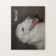 Dieses ist ein Puzzlespiel, das eine ursprüngliche Fotografie eines schönen weißen Borzoi mit einem hellbraunen Hintergrund kennzeichnet.