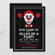 Diese Einladungen sind perfekt für jeden, der ein Halloween-Fest plant. Das Design besteht aus einem beängstigenden Clown mit zwei roten Ballons und ist mit passender bearbeitbarer Formulierung fertig. Dieses lustige Design kann für den Anzug Ihrer Veranstaltung personalisiert sein und ist die perfekte Ankündigung für jedes Halloween-Party, inklusive Geburtstagspartys, Bachelorette und Bachelor-Partys und vieles mehr.