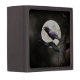 Ein Rabe wird gegen den Mondschein dargestellt.