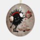 Dark strukturierte böse Weihnachtsschmuck mit einem bösen schwarzen Bug, der ein Weihnachtsgeschenk mit rotem Band hält. Sogar in seinem Übel ist es so freundlich, Geschenke zu geben. Neben dem bösen Charakter gibt es einen Weihnachtsbaum mit roten Weihnachtsbällen und einem roten Stern. Dieses böse Charakterschmuck hat den anpassbaren Text "Frohe Weihnachten" und wird ein großes Weihnachtsgeschenk für jemanden machen, der gotischen Stil und lustige Cartoonfiguren Lieben.
